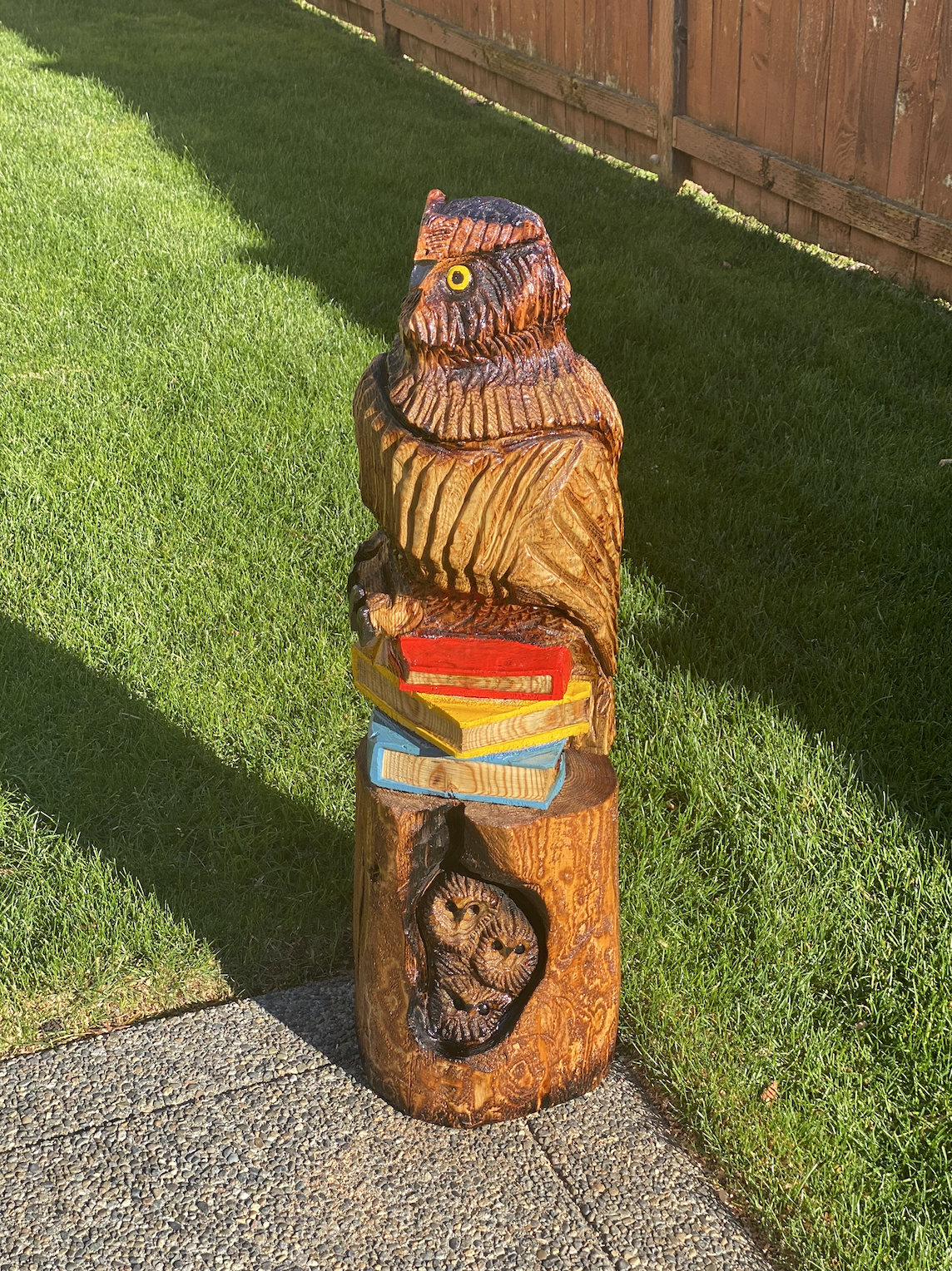 I create original chainsaw carvings, relief slabs, and character sculptures — all by hand, all with intention.